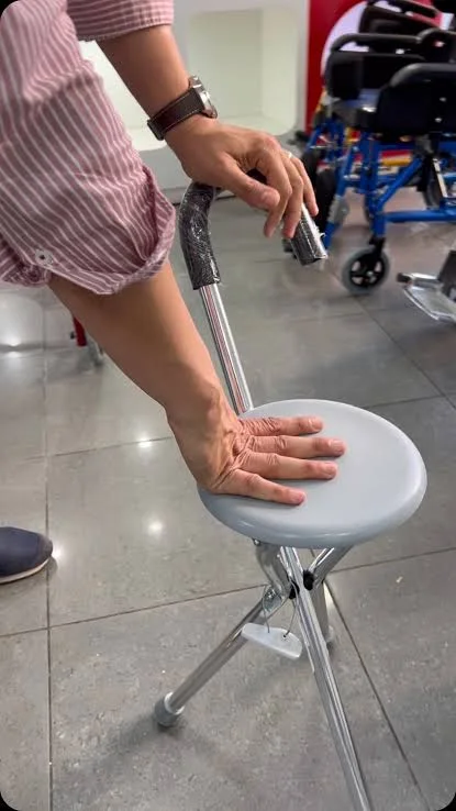 هذا المنتج يجمع بين العصا للمشي و الكرسي المريح في تصميم واحد خفيف وسهل الحمل، مثالي للأماكن العامة، الرحلات العائلية، الأسواق أو الحدائق.